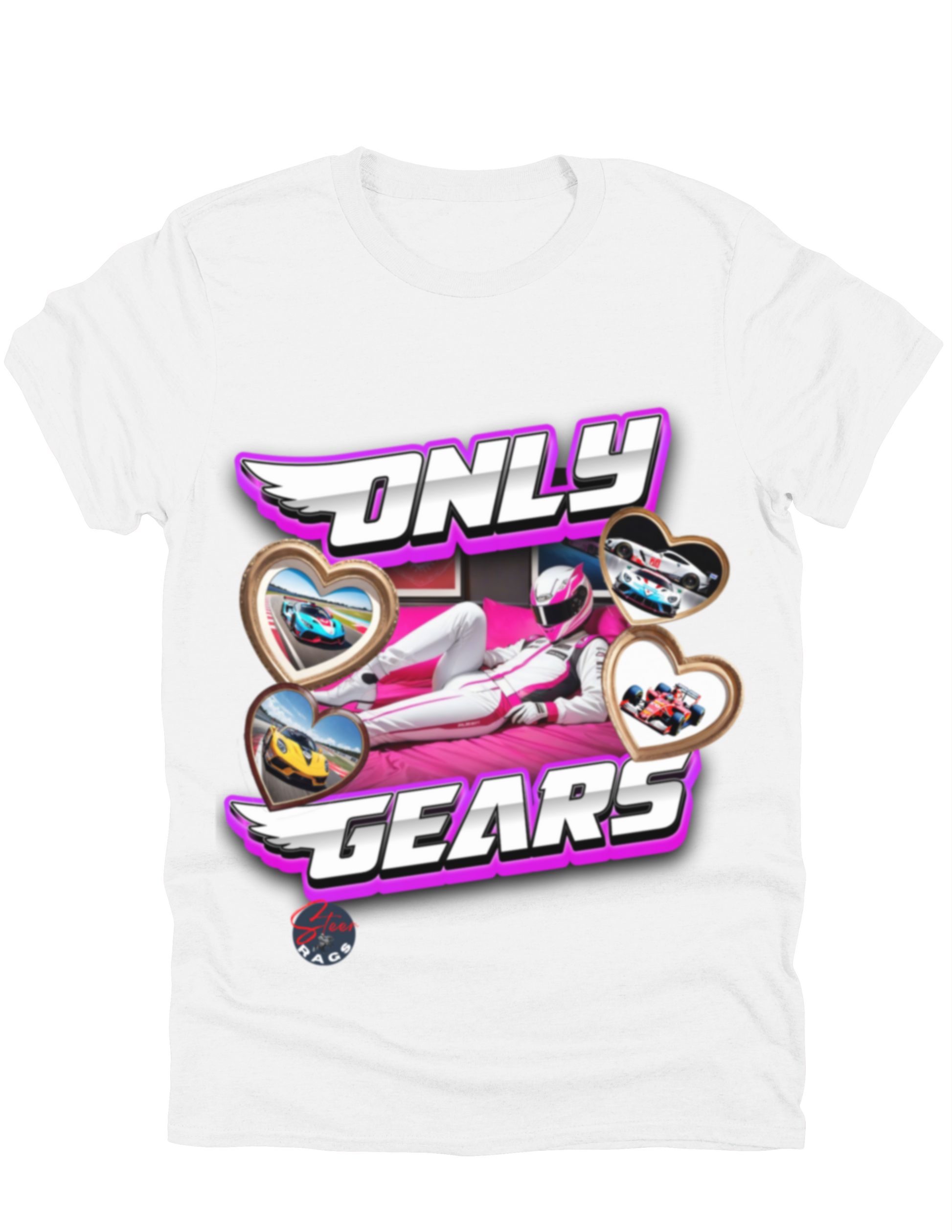 Rev up your style with the Only Gears T-shirt. This bold and flirty design isn't just about looking good - it's about feeling empowered and bold. Made with soft and comfortable fabric, this sultry tee will make any gearhead's heart race. Show off your cheeky side with this bold print-no monthly subscription required.